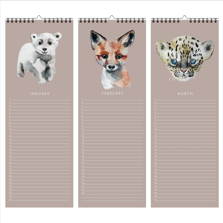 13 liebevoll aquarellierte Tierportraits begleiten dich mit diesem Geburtstagskalender durch das Jahr.